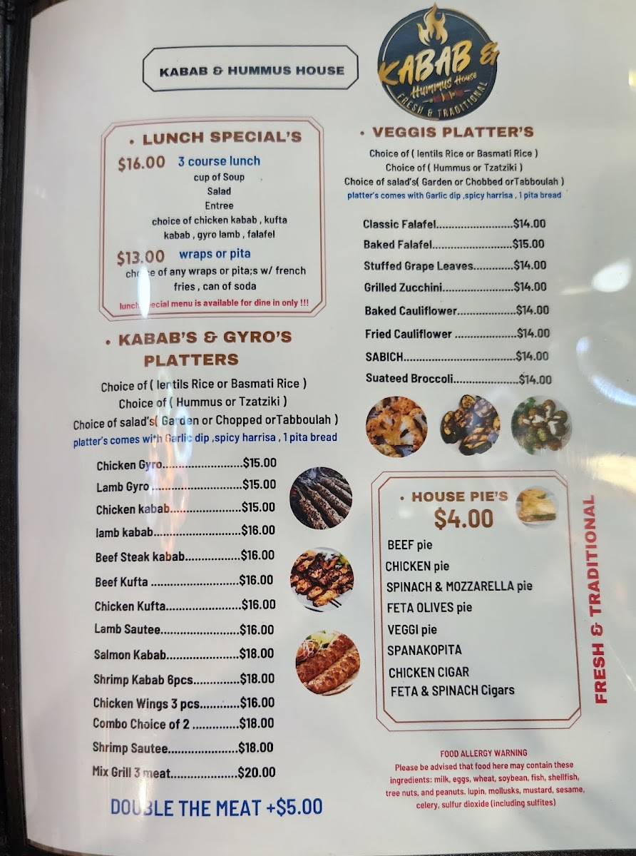 Kabab & Hummus House Menu
